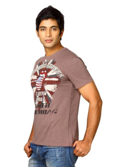 The tongue with the American flag became an iconic revolutionary symbol during the times of the Rolling Stones. Relive the era of the Rolling Stones with this melange brown t-shirt from free authority. Team this with denims, leather boots and a motorcycle jacket for a total bad boy look.