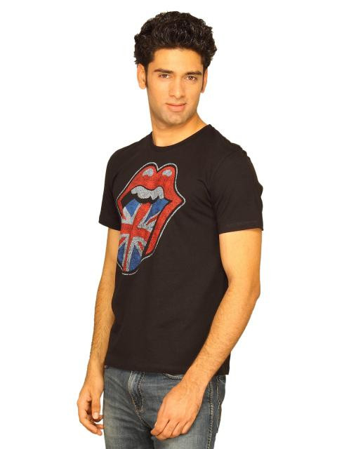 The 'tongue with the American flag became an iconic revolutionary symbol during the times of the Rolling Stones. Get retro, relive the era of the Rolling Stones and its evergreen music with this funky cotton t-shirt. Up your look by teaming this tee with denims and boots.
