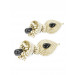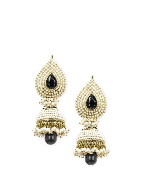 Teardrop shaped earring with pearl like embellishments and black stone in the centre