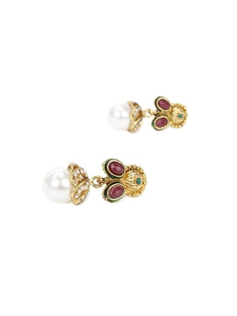 Inspired from India's rich jewel history, this pair of earrings from royal diadem is sure to become a love-forever statement piece in your jewellery box. Style this with matching ethnic suits or saris or wear it with a monochrome ensemble for an interesting fusion vibe. This piece is guaranteed to give your look an instant boho edge (if it's a Western outfit) or a refined polish (if paired with ethnic wear)