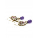 Purple single tear drop shaped dangler with pearl like beads dangling at the intersection