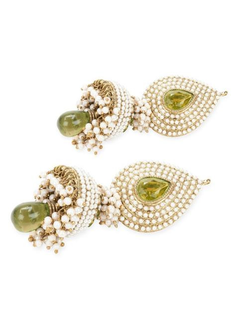 A heavy jumka (a bell shaped dangler) hanging from the base with pearl embellishments