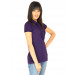 Purple polo neck top made of 100% viscose, has short puff sleeves with elasticated cuff, and short buttoned placket with ruffles around it
