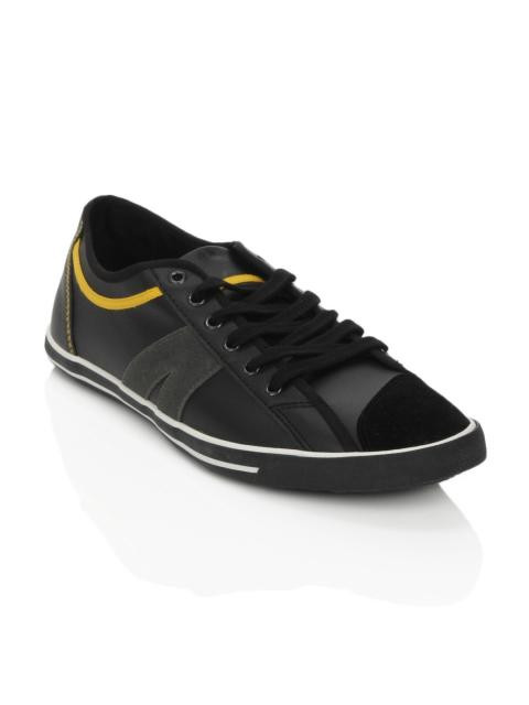 Round toed casual shoe in black and yellow with lace-up fastening with thick, wax-coated laces for slip free knotting