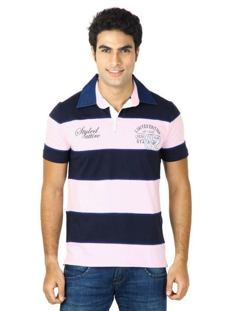Pink striped polo tshirt.