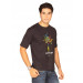 Black round neck short sleeved t-shirt made of 100% cotton, black fabric tape on the inseam of the neckline, vented hem, with graphic print and brand name on the front