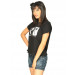Black round neck t-shirt made of 100% cotton, with short sleeves, and bold graphic print and lettering on the front