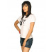 White round neck t-shirt made of 100% cotton, with short sleeves, and bold graphic print and lettering on the front