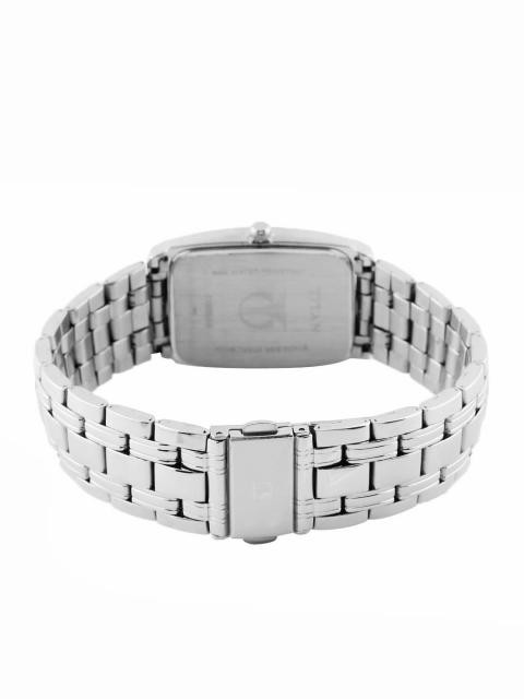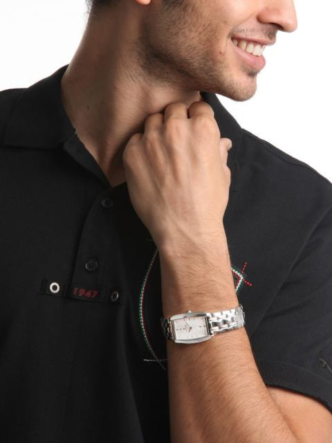 Silver coloured steel case with a fixed bezel for durability, style and comfort