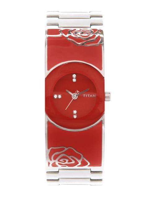 Red dial with silver hands and crystal embellishments