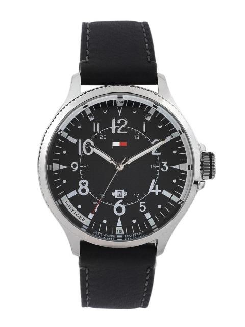 Case style: Analogue watch with a circular casenbsp;and a stainless steel backDial style: Black dialFeatures: A screw to reset time, a date apertureStrap style: Black leather bracelet-style strap secured with a tang claspWater-resistant up to 50 mComes in a signature Tommy Hilfiger caseWarranty: 2 year against manufacturing defects from the date of purchase