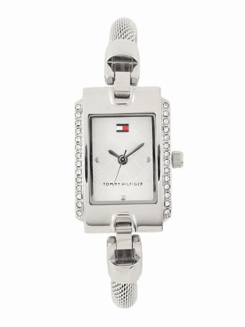 Case style: Analogue watch with a rectangular case,nbsp; has a fixed bezel with stone embellishments along the rim