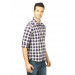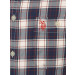 Blue and red check shirt with cream accents made 100% cotton, has full slevees with buttoned cuffs, a spread collar, a full buttoned placket, embroidered branding and a patch pocket on the left chest and a curved hem