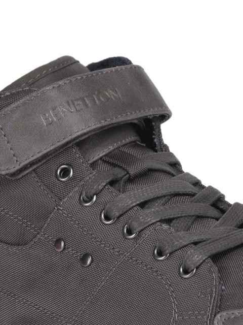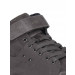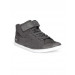 Blunt toed, mid- top casual shoe in grey with lace-up fastening and overlays