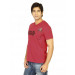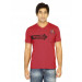 Red T-shirt made of 100% cotton, has a V-neck, short sleeves and graphic print on the front
