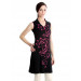Black V-neck printed kurta made of a stretchable 100% cotton fabric, sleeveless, graphic print on the front and a vented hemline