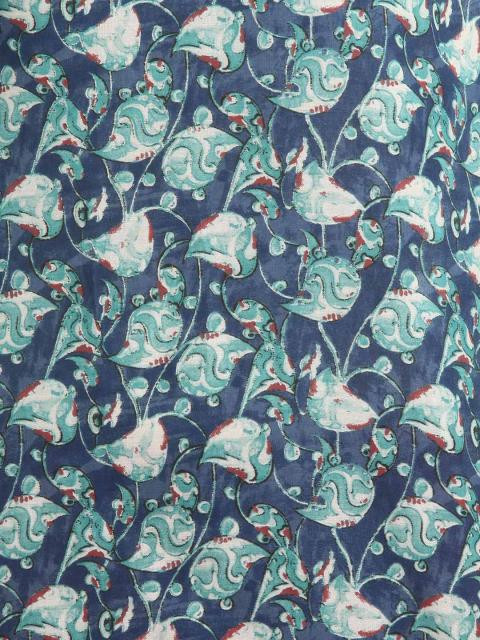 Blue printed kurta with square neck that is slightly curved at the centre, is sleeveless with cap sleeves, is elasticated and smocked on the shoulders and has a vented hem