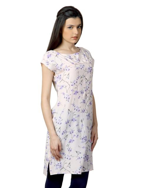 Light pink printed kurta made of 100% viscose, has a round neck, short sleeves, has an empire waist and a vented hemMaterial and Care