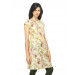 Beige floral print kurta made of 100% cotton, has a round neck, short raglan sleeves and slit side seams