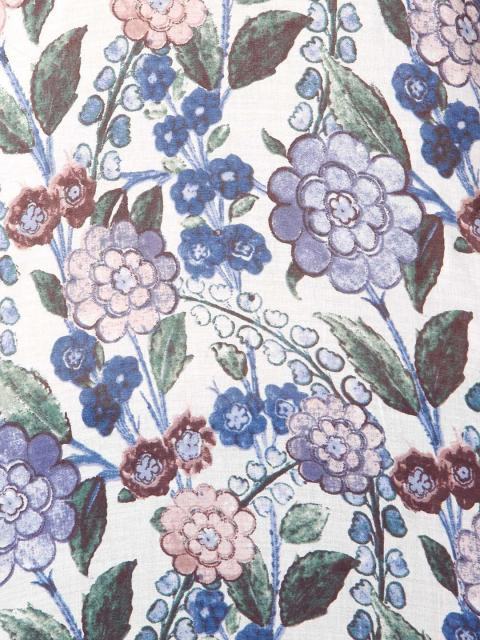 Blue printed kurta made of 100% cotton, has a round neck, three fourth sleeves and a vented hem
