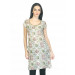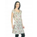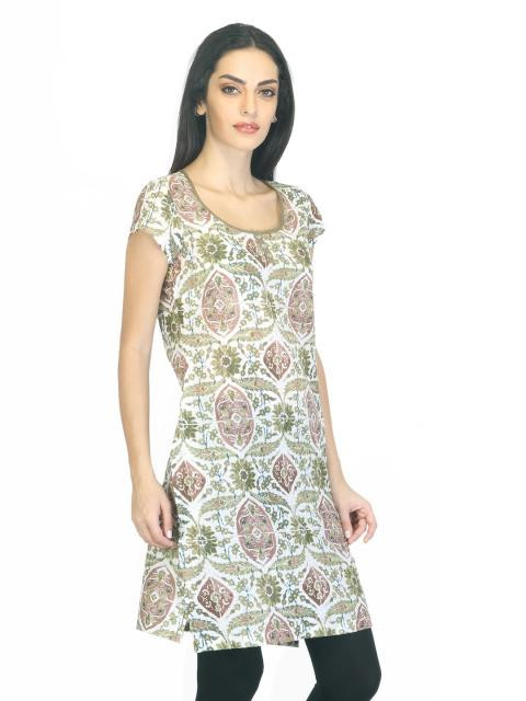 Green and brown printed kurta made of 100% cotton, has a round neck, short buttoned placket and slit side seams
