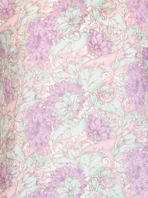Lavender floral print kurta made of 100% cotton, has a V-neck, short sleeves and slit side seams
