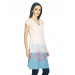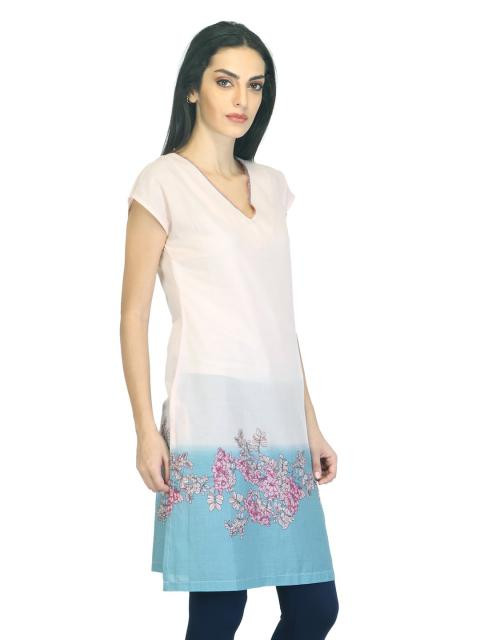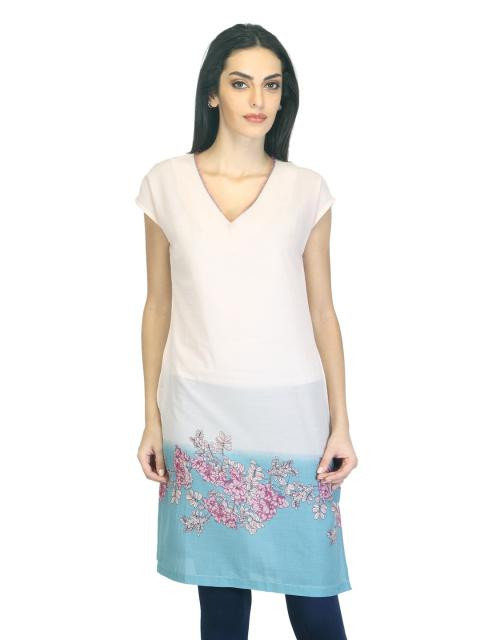 Pnk and blue printed kurta made of 100% cotton, has a V-neck, short raglan sleeves and slit side seams