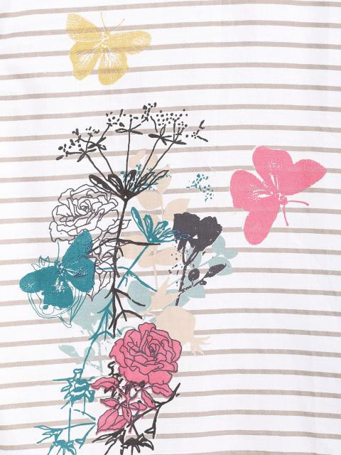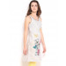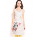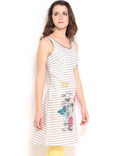 White and brown printed sleeveless kurta made of 100% cotton, has a round neck and slit side seams