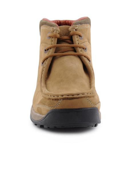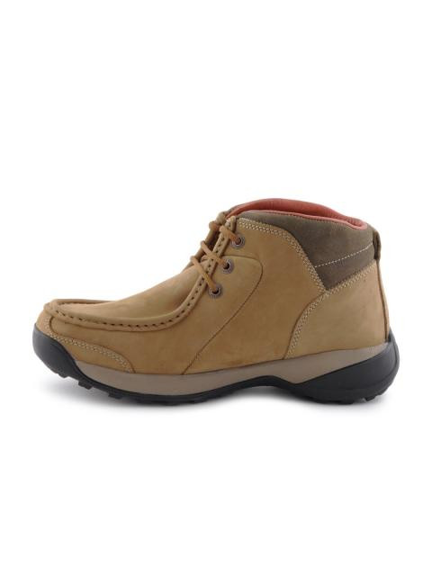 Blending rustic suede with plush two-tone leather, these ankle boots are designed for comfort under extreme conditions. High top styling with stitch seams at the toe box is a sartorial reference to the spirit of adventure. Wear these with form fitting denims and a dark formal shirt.