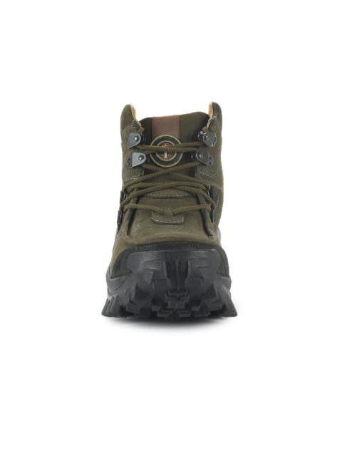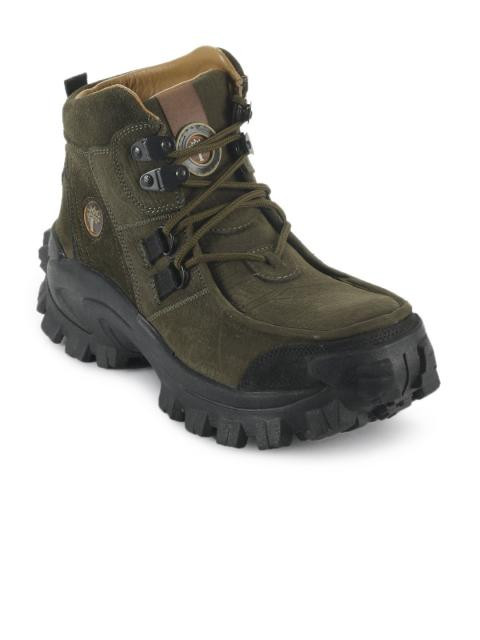 High-top styling on the classic suede shoe, this woodland ankle boot is set to become your mainstay while braving the great outdoors. Aggressive outsole with lugs, plush textured upper, D-ring eyelets and tough overlays make this an adventurer's sartorial dream. Wear these with your cargo shorts or military pants and your favourite polo t-shirt.