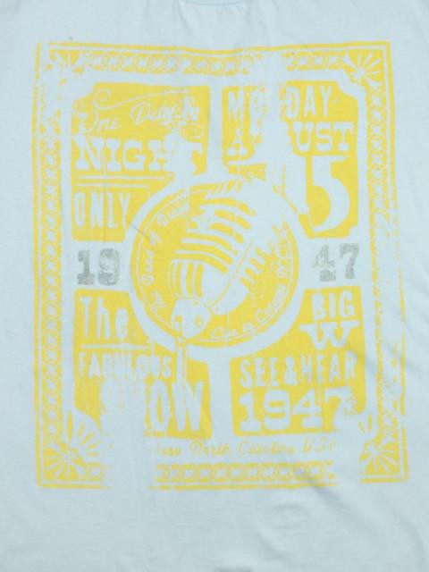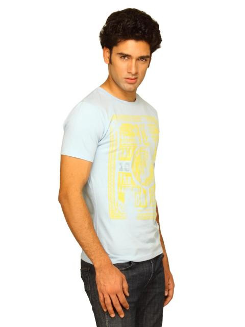 Celebrate the spirit of music with this Band of Blues tee from wrangler's collection. In light blue and fading yellow print, this t-shirt is given a complete retro feel. Made of cotton fabric, it will keep you dry and comfortable through all seasons, while you can adopt a stylish look by pairing this tee with denim pants or shorts and ankle length boots from the wide range available at myntra.