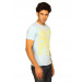 Round neck blue t-shirt with fading chest print, made of 100% cotton