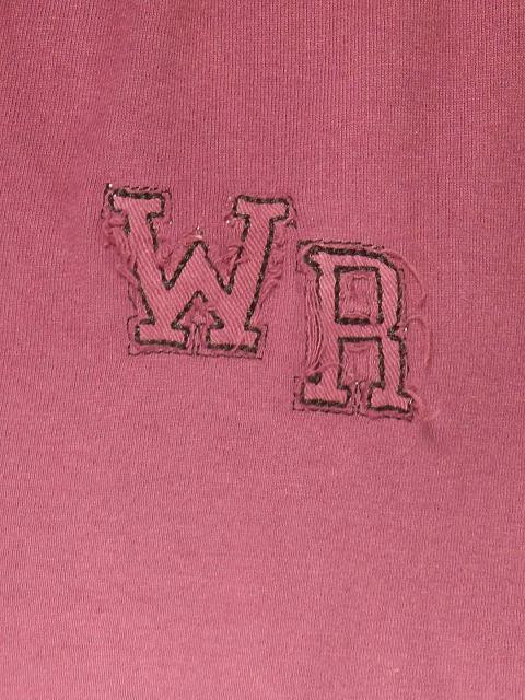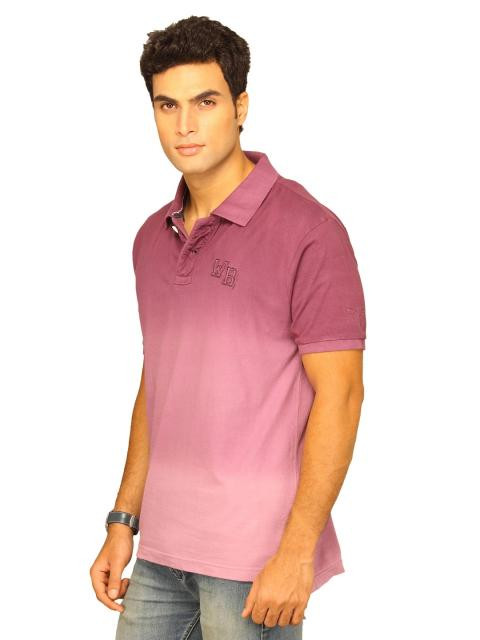 Purple polo t-shirt in fading shade, made of 100% cotton, has a front buttoned neck with white branded buttons on rugged cotton placket, ribbed collar and sleeve hems, brand style in distressed fabric, split side ends with twill strips inside, branding on fabric on inner neck and comes with an extra button